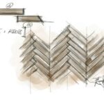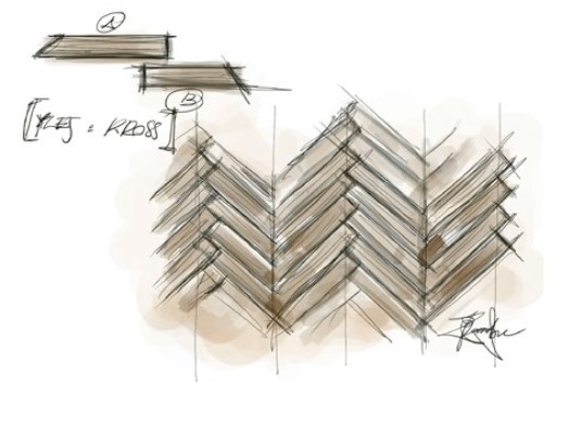 Two angles, 45° and 90°, distinguish the basic element of Kross: a rectangular trapezium presented in two formats that dialogue with each other creating a large Italian herringbone.