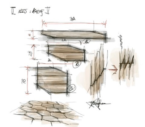 The reference geometric figure in Kytos is the irregular hexagon applied to the wooden board which, having not four but six sides, maintains a harmonious geometric order and acquires dynamism and versatility. Kytos is a symbol of modularity and creativity: its three dimensions can be composed of each other or can be laid alone, on a straightforward installation, with the use of metal or stone