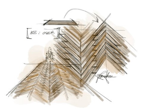 The quadrilateral is expressed in Over in the shape of an isosceles trapezium: the symmetry of the sides gives it a harmonious and compositional capacity that is expressed in the herringbone installation, with elegance and lightness.
